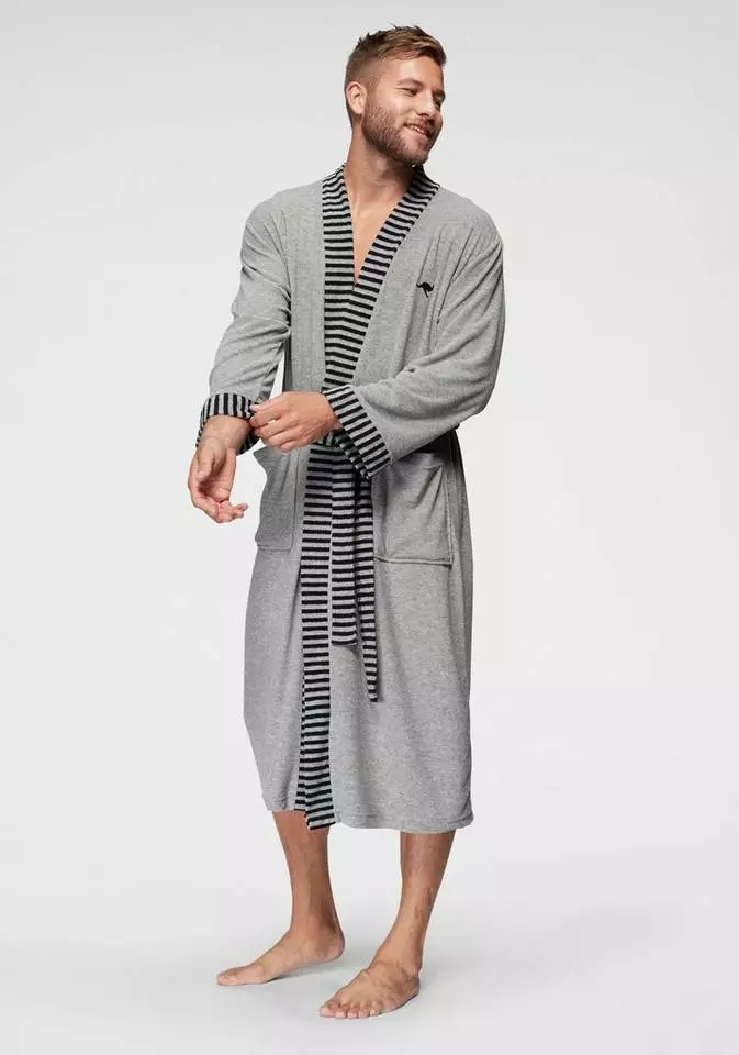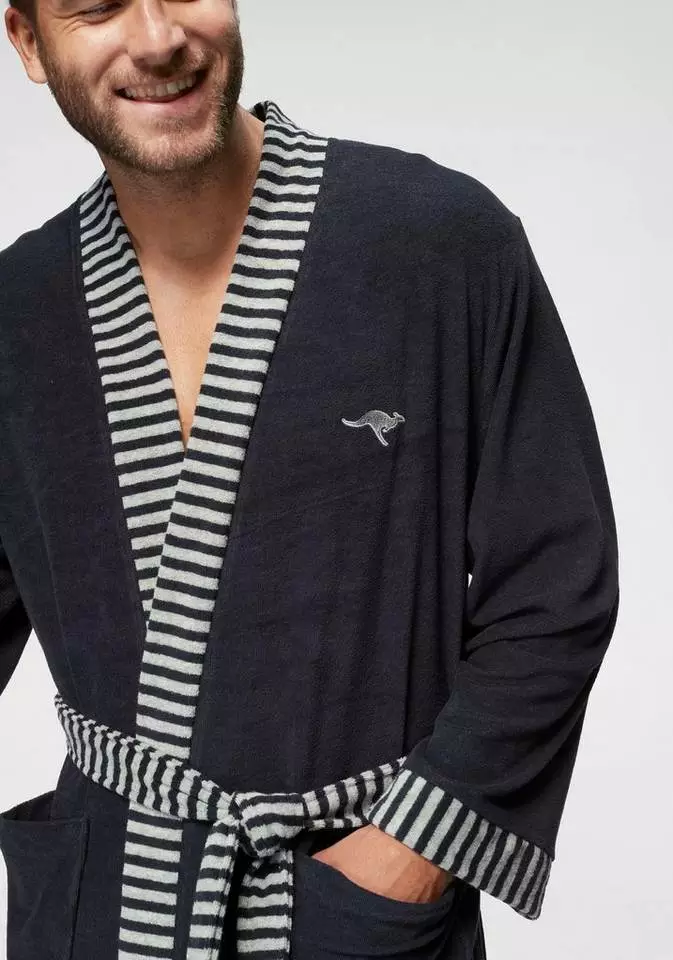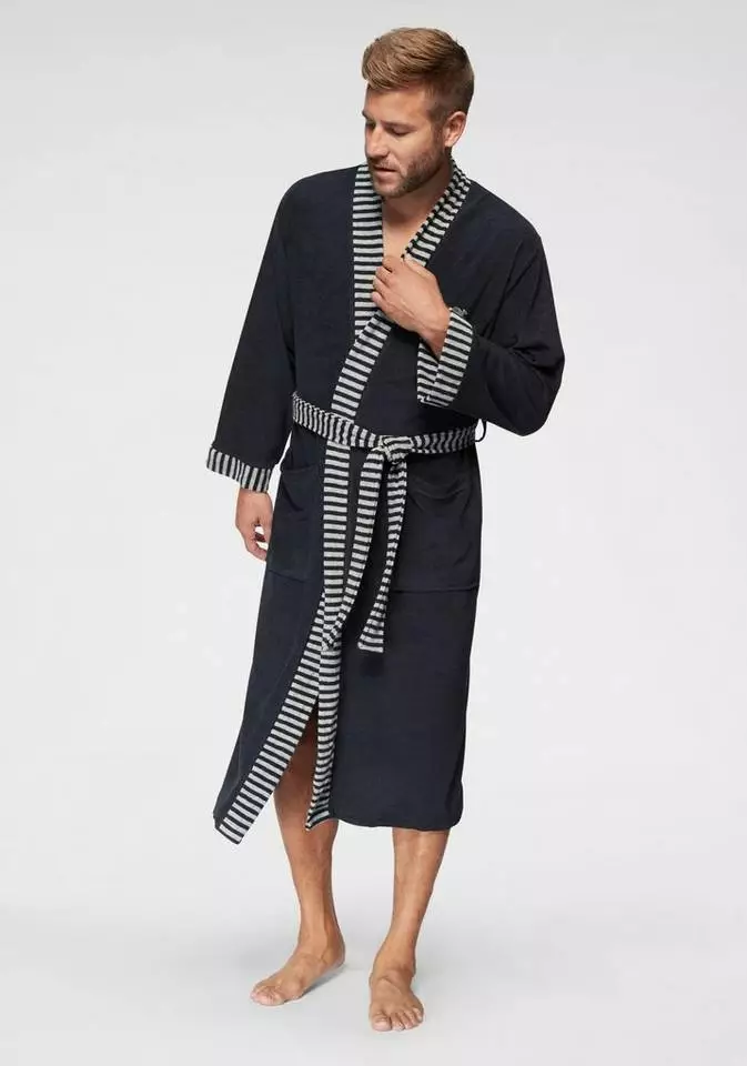Herrenbademantel »Cilio«, KangaROOS, mit gestreifter Bordüre Marine, Grau