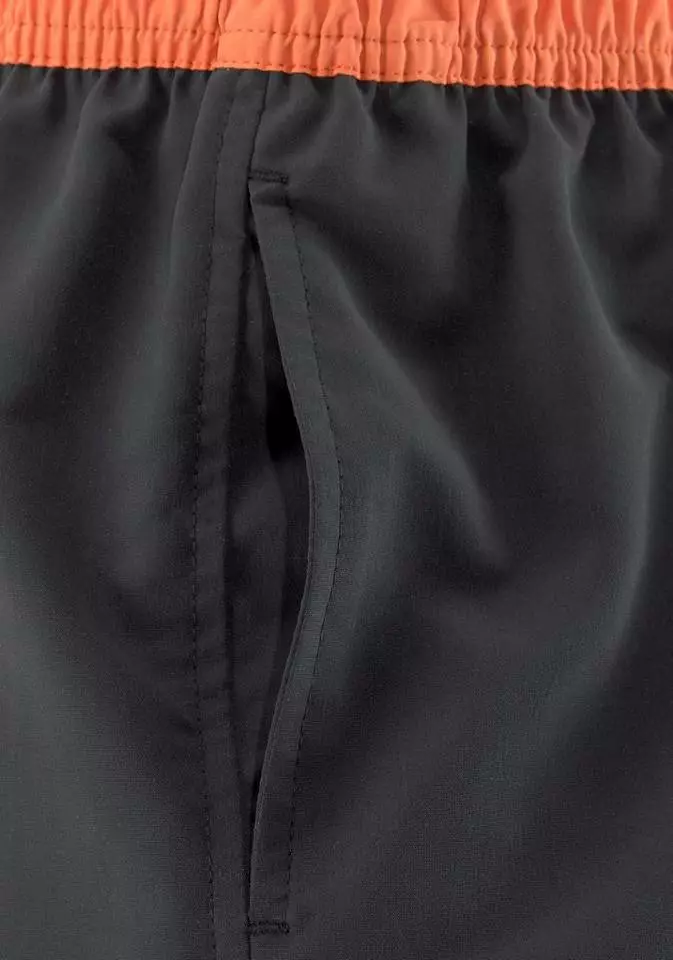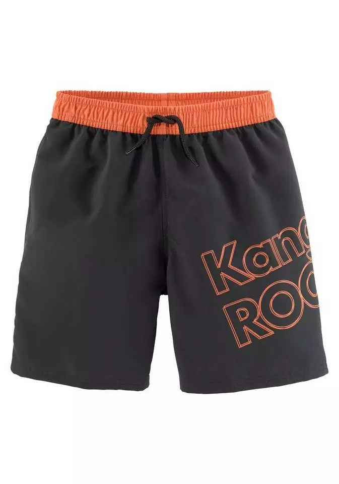 Sportlich und lässig präsentieren sich diese stylischen Badeshorts von Kangaroos. Bei jedem Ausflug zum See oder bei einem Strandurlaub mit der Familie darf die coole Badehose nicht fehlen. Sofort ins Auge sticht hier der moderne Logoprint auf dem Bein. Dieser harmoniert farblich einfach perfekt zum kontrastfarbenen Gummibund, der dank seiner elastischen Eigenschaften für optimalen Sitz sorgt. Die Zierkordel am Bund ist ein witziges Detail. Um das Design abzurunden, befindet sich in der Hose ein Innenslip mit kleiner Tasche. Eine seitliche Eingrifftasche bietet Platz für Kleinigkeiten. Auf der Wasserrutsche im Freibad oder beim Sonnenbaden mit Freunden am Strand sind die Badeshorts von Kangaroos einfach ideal.