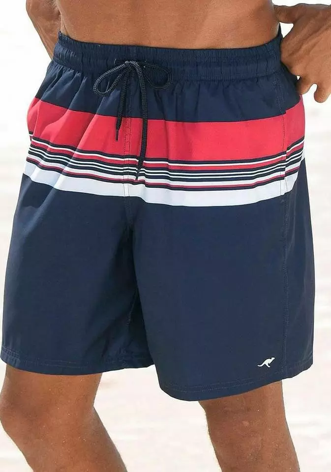Auf Streifzug am Strand mit den Badeshorts von Kangaroos! Das modische Design punktet mit dekorativ platzierten Streifen und einem dezenten Logo unten am Bein. Dabei bieten die Boxerbadeshorts ausreichend Platz für Wichtiges: zwei seitliche Eingrifftaschen, eine Gesäßtasche mit Klettverschluss und eine kleine Innentasche am Innenslip. Hohen Tragekomfort und einen guten Sitz der Badehose verspricht der elastische Bund mit Kordelzug. Die Badeshorts von Kangaroos sind ein Must-have für einen unbeschwerten Tag am Wasser!