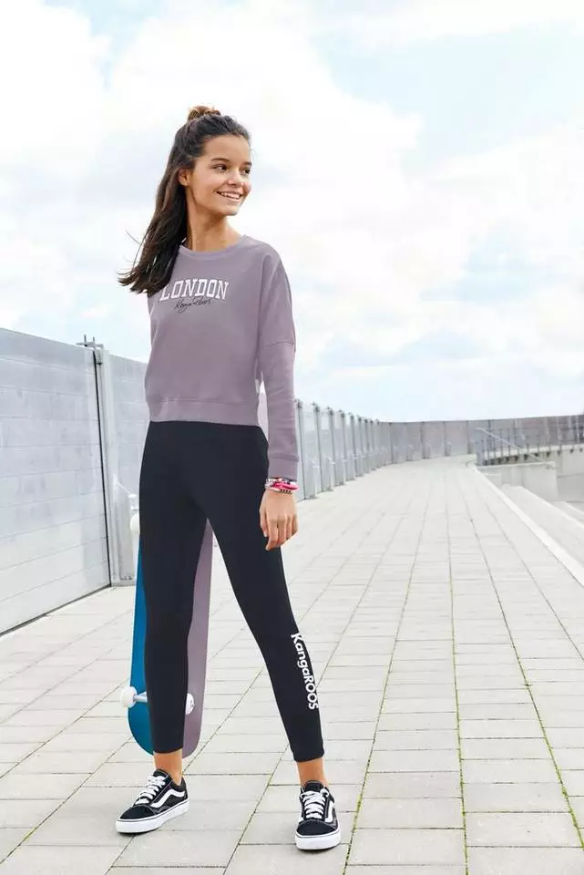 Probieren geht über kopieren: Mit diesem Fledermausshirt von KangaROOS erfinden Teens ihren eigenen Style. Mit dem Aufdruck sieht es trendig und ausgefallen aus. Die langen Fledermausärmel sind dank ihrer Weite sehr bequem. Sie enden in einem Bündchen. Das Shirt hat einen Rundhalsausschnitt und ist taillenbedeckend sowie weit geschnitten, sodass der Tragekomfort nicht zu kurz kommt.
