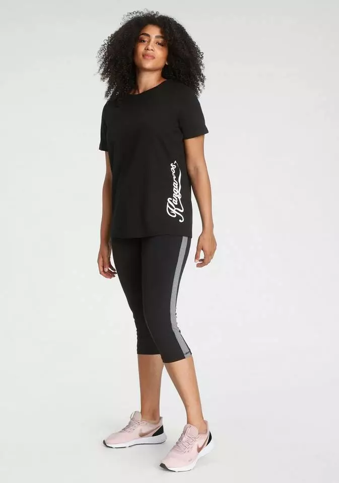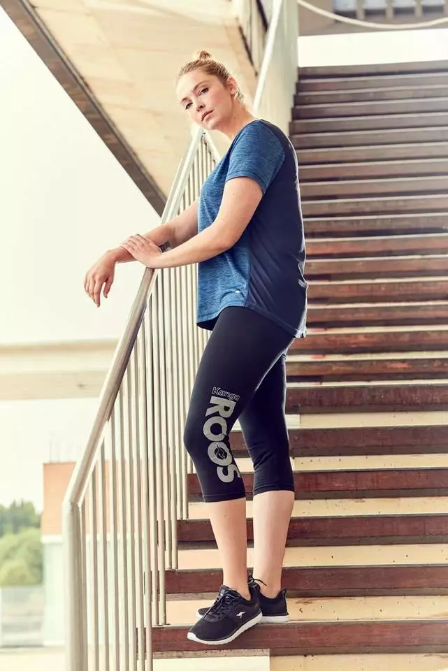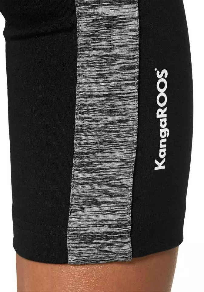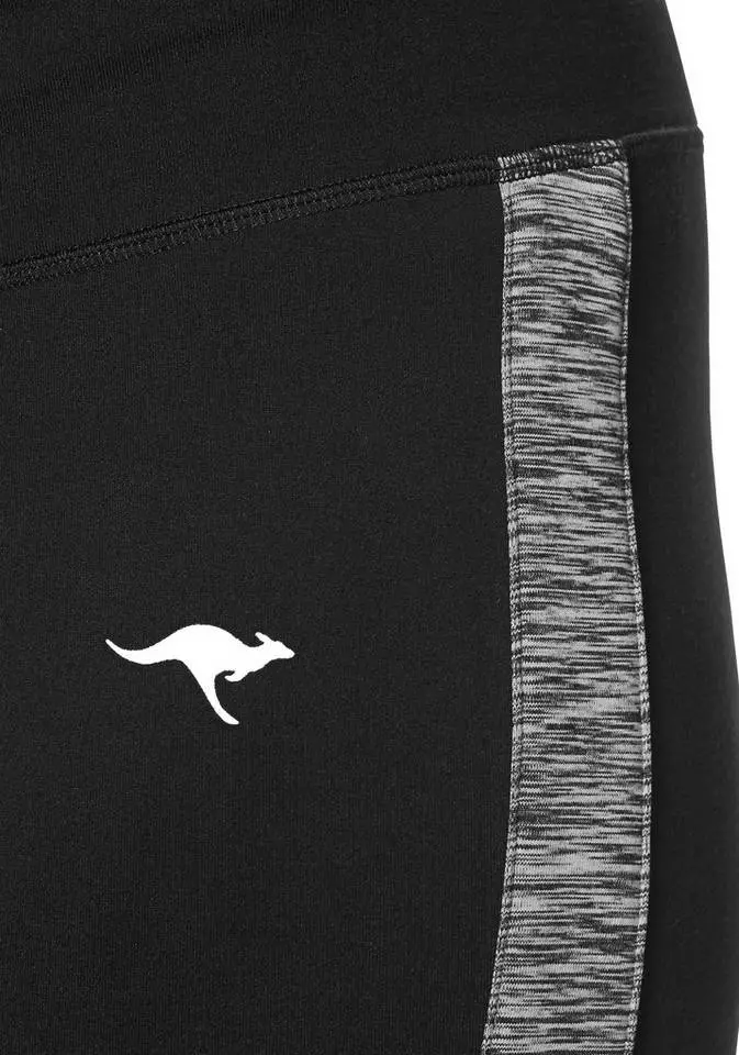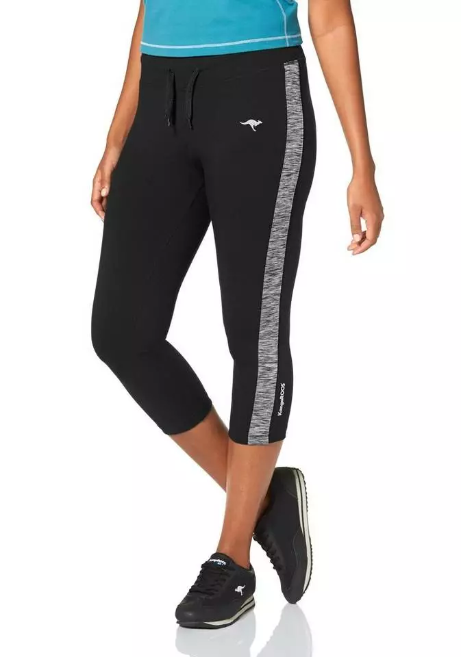 Trainingspartner mit Eyecatchereffekt. Die Funktionstights in 3/4-Länge von Kangaroos überzeugen bei Work-out und Fitness mit der schnell trocknenden und atmungsaktiven Qualität. Diese funktionalen Vorteile werden stilsicher von der sportiven Caprilänge, einem kleinen Logoprint und den seitlichen, optisch streckenden Kontrasteinsätzen ergänzt. Ein Sportshirt dazu oder einen Oversize-Hoodie und los geht’s auf die Laufrunde oder ins Sportstudio. Die 3/4-langen Funktionstights von Kangaroos für Frauen, die beides wollen: Fitness und Style!