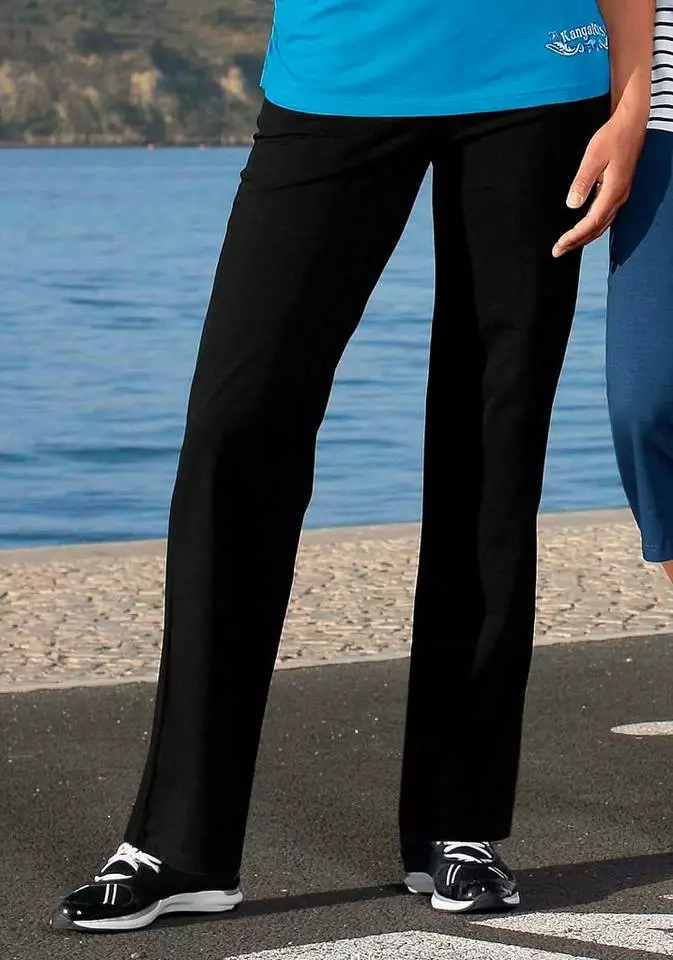 Perfektes Aussehen garantiert! Die Trainingshose von Kangaroos mit kleinem Labelprint und breitem Stretch-Gummibund sitzt dank ihres vorteilhaften Schnitts einfach perfekt: eng an der Hüfte und mit leicht ausgestelltem Bein. Der besonders schöne Fall der leichten Stretchqualität sorgt für Wohlbefinden. Als Kombipartner für diese Palazzohose bieten sich ein Top, T-Shirt oder auch ein Longsleeve an, je nach Lust, Sportart oder Wetter. Die Kangaroos-Trainingshose ist ein Muss für modebewusste Freizeitsportlerinnen.