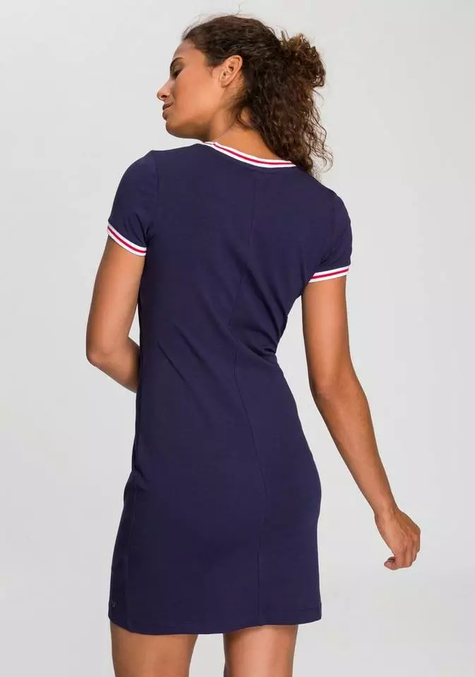 Sportiver Glamour? Und ob! Das Jerseykleid von Kangaroos setzt auf spannende Kontraste und lässt den Frontprint im Casual-Stil mit einem funkelnden Glitzern zur Geltung kommen. Gestreifte Bündchen an Ausschnitt und Ärmeln ergänzen das Shirtkleid um coole Anleihen aus dem College-Look. Der trageangenehme Baumwolljersey mit Stretchanteil bringt den figurbetonten Schnitt des Jerseydresses gelungen zur Geltung. Stilecht mit flachen Sneakers kombiniert punktet das Jerseykleid von Kangaroos als Basic mit modischer Raffinesse.