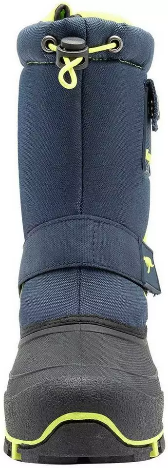 Im Schnee daheim: die Snowboots »Kanga Bean II« von Kangaroos begeistern schon beim Einstieg mit einem gepolsterten Schaft. Dank des praktischen Tunnelzugs und des Klettverschlusses lassen sich die Winterstiefel persönlich anpassen. Eine Minitasche mit Druckknopfverschluss ist für Kleinigkeiten bestimmt. Mit der stark profilierten Laufsohle hast du auf jedem Untergrund perfekten Halt. Die wärmende und abdichtende Einlage kannst du herausnehmen und so auch nur mit dicken Socken hineinschlüpfen. Das Synthetikmaterial des unteren Parts ist wasserdicht. Bei Eis und Schnee dein idealer Partner – die Snowboots »Kanga Bean II« von Kangaroos.