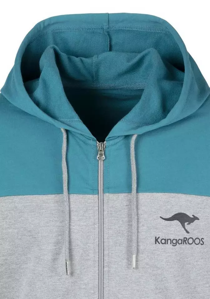 Kangaroos zeigt mit seiner Kapuzenjacke, wie cooles Colorblocking geht! Der Logoprint links auf der Brust ist die perfekte Ergänzung zu den Farbblöcken – und das gilt auch für den farblich abgesetzten Reißverschluss, den Kordelzug an der Kapuze sowie für die kontrastierenden Taschenleisten. Formstabile Rippabschlüsse am Saum und an den Ärmeln verleihen dem Hoodie seine überragende Passform. Die leichte Kapuzenjacke von Kangaroos aus hochwertigem Baumwoll-Mix wird spielend leicht jedes andere Sweatshirt in deinem Kleiderschrank verdrängen!
