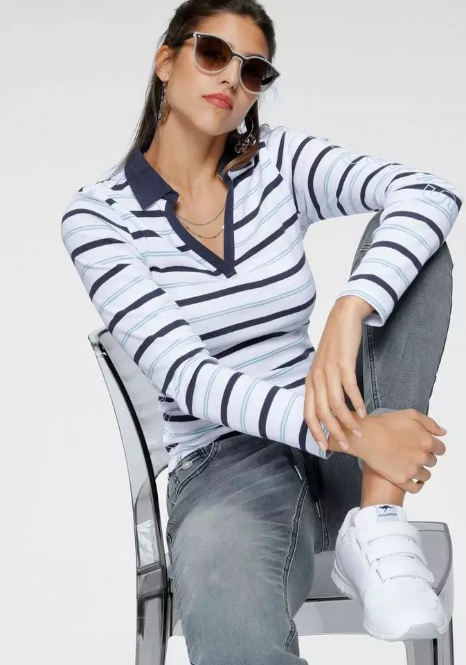Klassiker stellen wir uns irgendwie anders vor, eher in Richtung bieder und konservativ. Merkmale dieser Art sucht man bei dem Poloshirt mit langen Ärmeln von Kangaroos vergebens. Ganz im Gegenteil, das Polo wirkt cool und sportlich. Der Ausschnitt und der Kragen des Shirts sind farblich abgesetzt, der Streifen-Look gibt dem Ganzen einen zeitlosen Touch. Auf einem der Ärmel des Rippshirts befindet sich der Logoprint. Komfortabel: das langärmelige Poloshirt von Kangaroos.