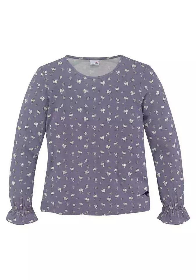 Das Langarmshirt von KangaROOS macht alles möglich – ob dezent, cool oder peppig. Es wirkt mit dem Aufdruck trendig und ausgefallen. Die langen Ärmel haben einen Gummizug, der sich am Saum dem Arm anpasst und somit eng abschließt. Das Shirt hat einen Rundhalsausschnitt und ist hüftlang sowie ausgestellt geschnitten, sodass das Oberteil bequem sitzt.