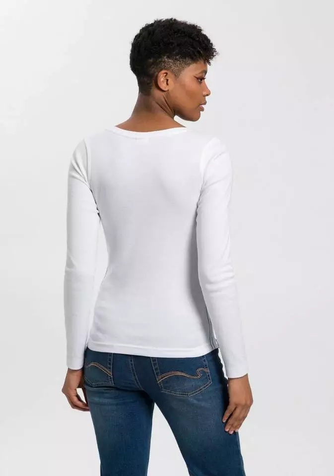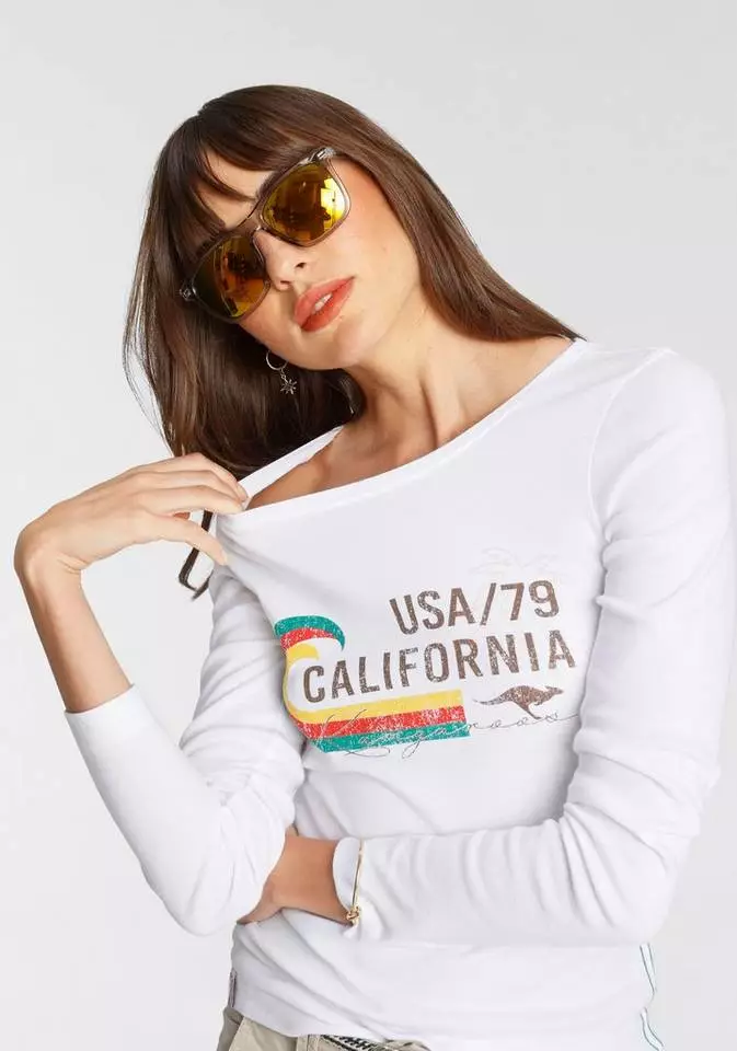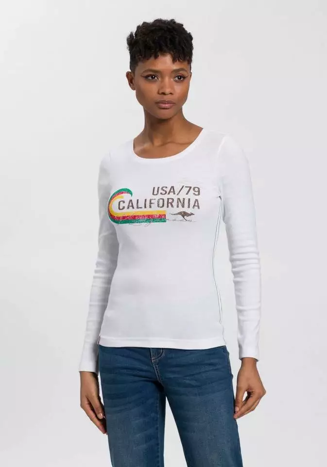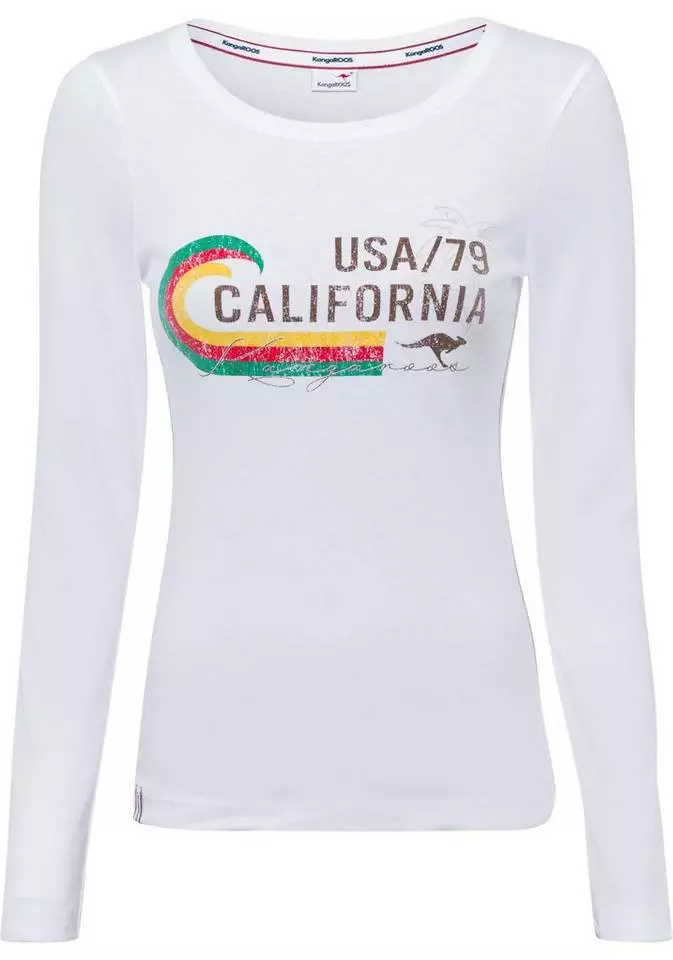 Mit dem Langarmshirt von KangaROOS bist du stilsicher unterwegs und gibst deinem Look den letzten Schliff. Denn durch das Vintage-Design bekommt das Shirt einen Used-Look, wodurch deine Looks cool und lässig wirken. Dieses Shirt hat einen Rundhalsausschnitt und ist hüftbedeckend sowie sehr figurbetont geschnitten, sodass es deine Figur auf schöne Weise betont.