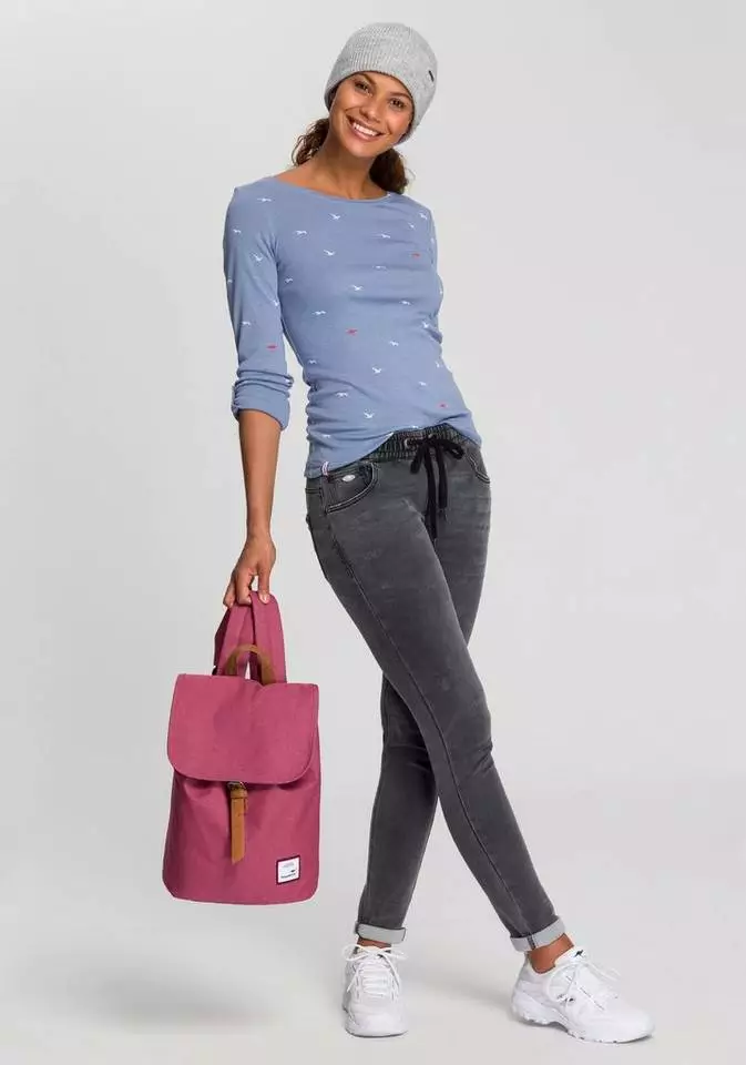 Kann man überhaupt genug Jerseyshirts haben? Wir sagen Nein. Mit dem Langarmshirt von Kangaroos erweiterst du deine Garderobe um ein tolles Printshirt. Schon auf den ersten Blick versprüht das schlanke Rundhalsshirt mit seinem Mustermix aus kleinen Motivprints femininen Charme. Die Krempelärmel mit dem kleinen Riegel setzen das verspielte Design des weichen Shirts konsequent fort. Egal, ob Freizeit oder Büro, das Langarmshirt von Kangaroos ist ab jetzt dabei.
