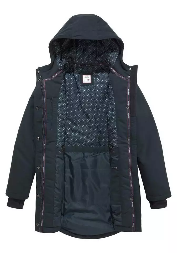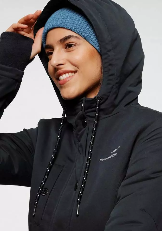 Bist du gerne modisch unterwegs, dann ist die Langjacke von KangaROOS gut geeignet für dich. Mit dem 2-Wege-Reißverschluss und den Knöpfen ist sie praktisch, wenn du mehr Bewegungsspielraum brauchst. Der Badge wirkt lässig. Die Langjacke ist Po-bedeckend und figurumspielend geschnitten, sodass du dich nicht eingeengt fühlst. Die Kapuze kannst du mit einem Kordelzug in der Weite verstellen. Dank der Fleece-Fütterung bleiben Ohren und Kopf geschützt. . Viele praktische Taschen bieten dir Platz in deiner Jacke. In den Innentaschen findest du Platz für Kleinigkeiten.