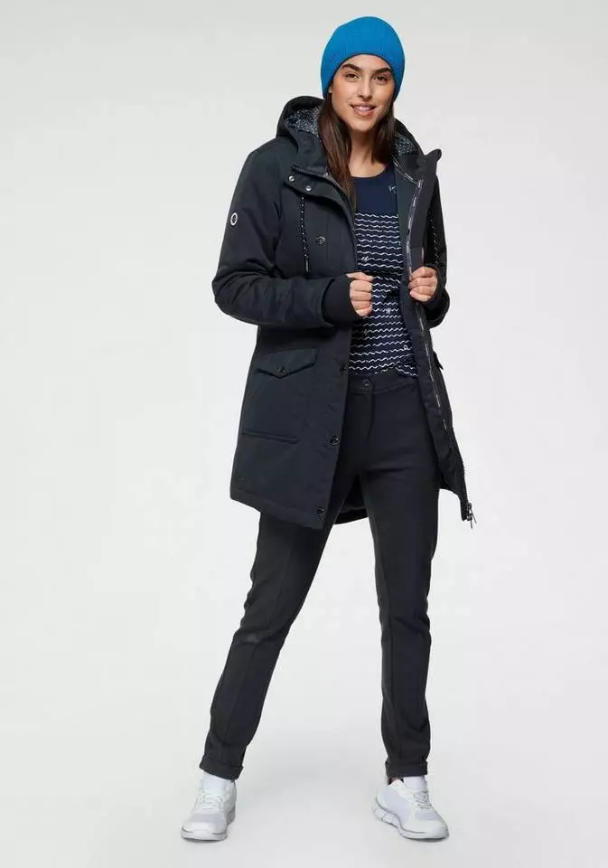 Die Damen-Langjacke von KangaROOS ist eine gute Wahl — ob für den Sonntagsspaziergang oder zum Einkaufen.