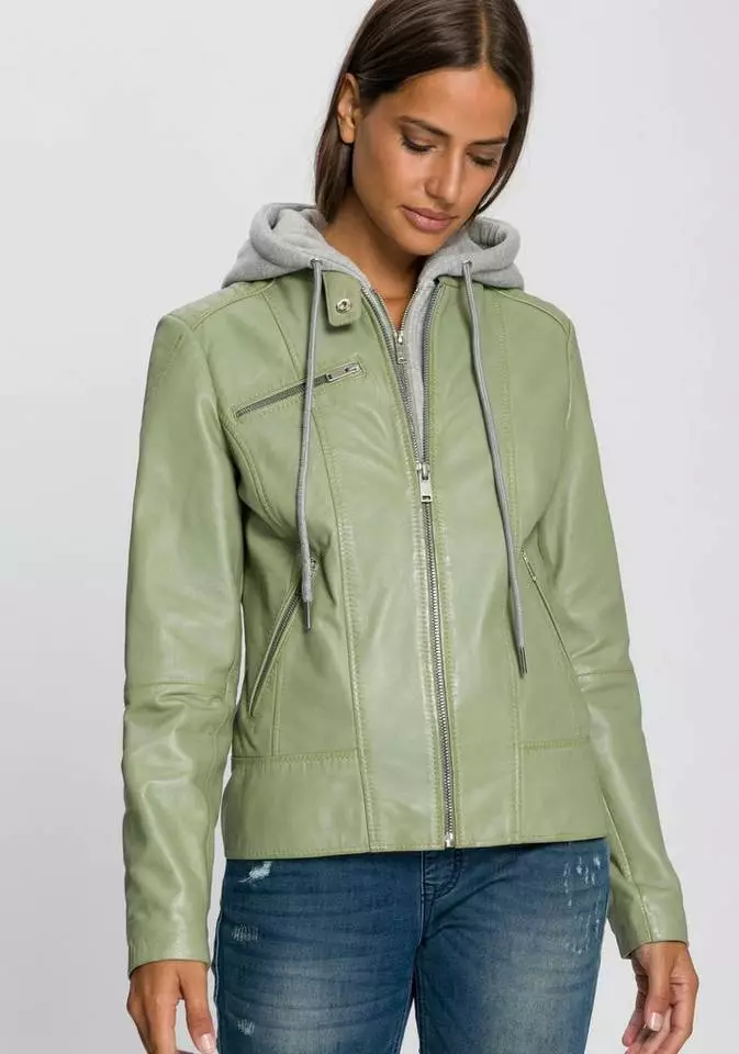 | Materialzusammensetzung | Obermaterial: 100% Lammnappaleder. Futter: 100% Polyester. Kapuze: 65% Polyester, 35% Baumwolle |
