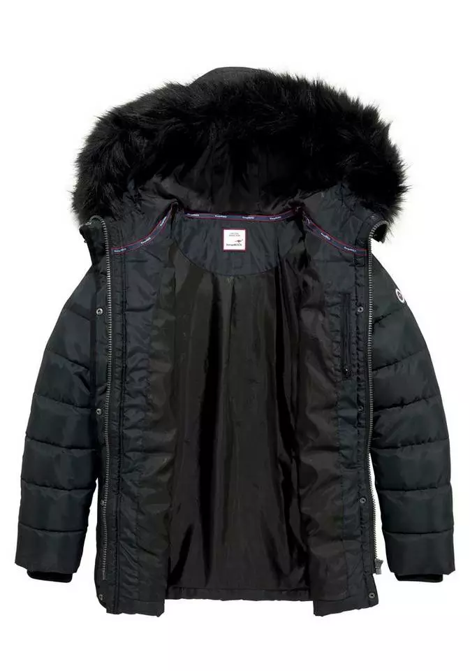 | Materialzusammensetzung | Obermaterial: 100% Polyester. Futter: 100% Polyester. Besatz: 80% Polyacryl, 20% Polyester. Wattierung: 100% Polyester |