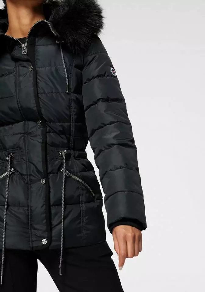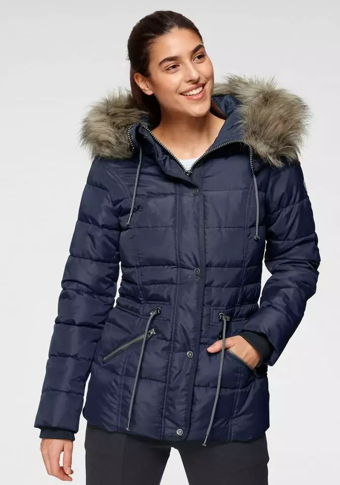Mit der Outdoorjacke von KangaROOS bekommst du ein Lieblingsteil für Outdoor-Aktivitäten. Der Badge bringt optische Highlights ins Outfit. Die langen Ärmel schließen mit einem Bündchen ab. So hast du die Möglichkeit mit der Ärmellänge zu spielen, indem du sie normal oder hoch geschoben trägst. Die Outdoorjacke ist hüftbedeckend und figurbetont geschnitten, so liegt sie leicht an und betont deinen Körper. Die Kapuze ist mit einem Fellimitat versehen, das du auch entfernen kannst. . In den Reißverschlusstaschen kannst du deinen Schlüssel oder Geldbeutel aufbewahren, ohne dass etwas herausfällt.