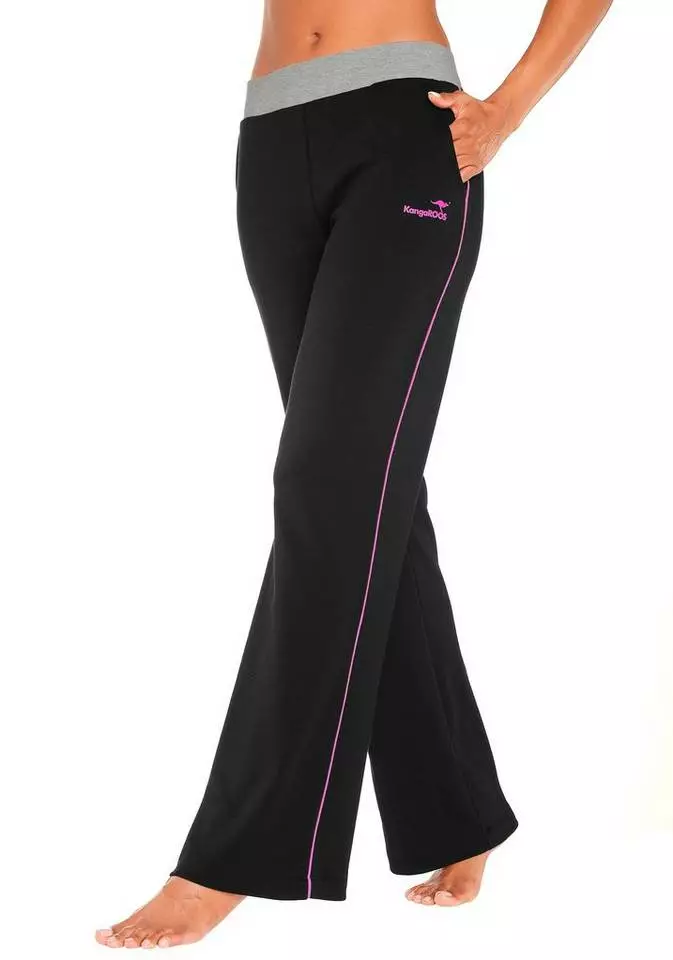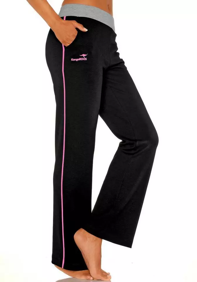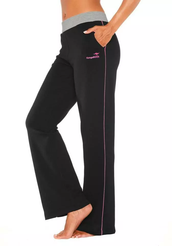 Die Relaxhose von KangaROOS ist viel zu schick, um sie nur zu Hause zu tragen. Mit ihrem gelungenen Design mit optisch streckendem, seitlichem Kontraststreifen und Logo in der gleichen Farbe ist sie wunderbar auch als Jogginghose für das Fitnessstudio oder den Weg zum Bäcker als Teil eines lässigen Casual-Outfits einsetzbar. Der bequem-breite Kontrastbund und die seitlichen Eingrifftaschen machen den entspannten Style perfekt. Mit der Relaxhose von KangaROOS ist ein lässiger Freizeit-Look schnell zusammengestellt. Innenbeinlänge: 80 cm.
