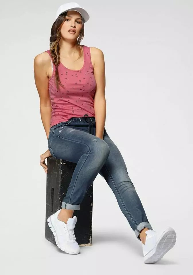 KangaROOS Ripptanktop im Doppelpack – 1x uni + 1x bedruckt Marine-weiß, Weiß-marine, Himbeere-hellgrau-meliert