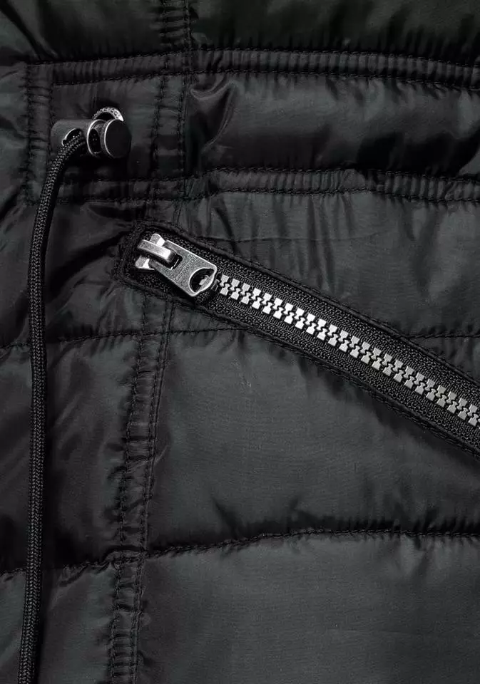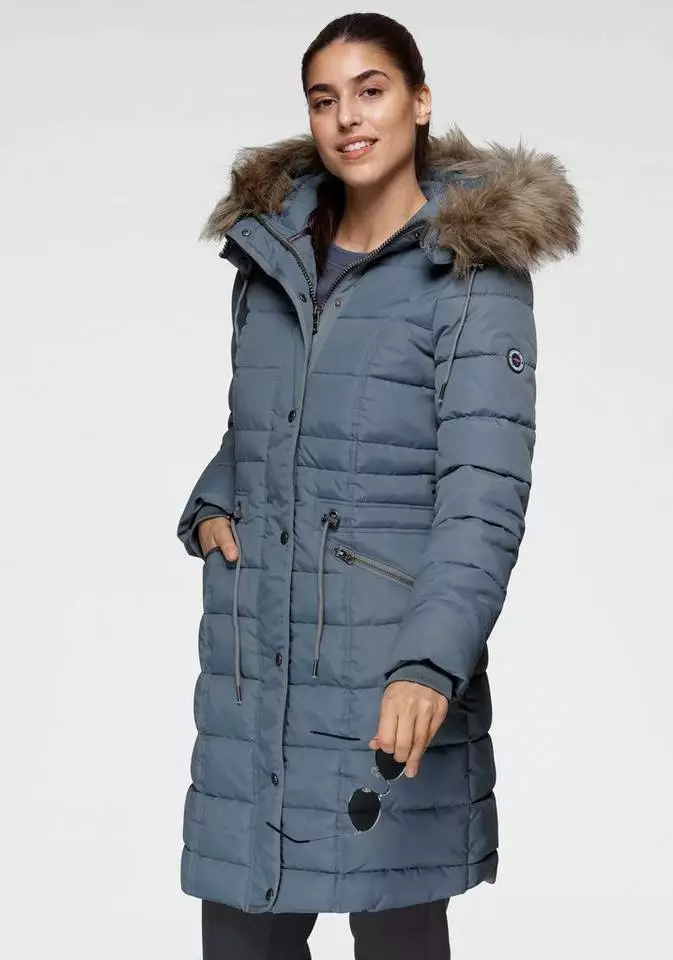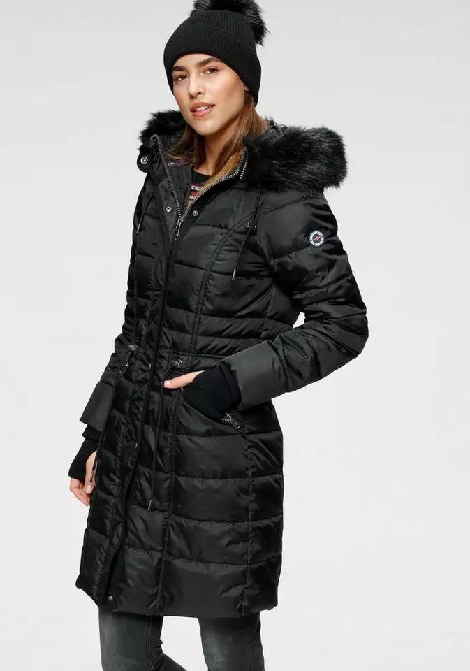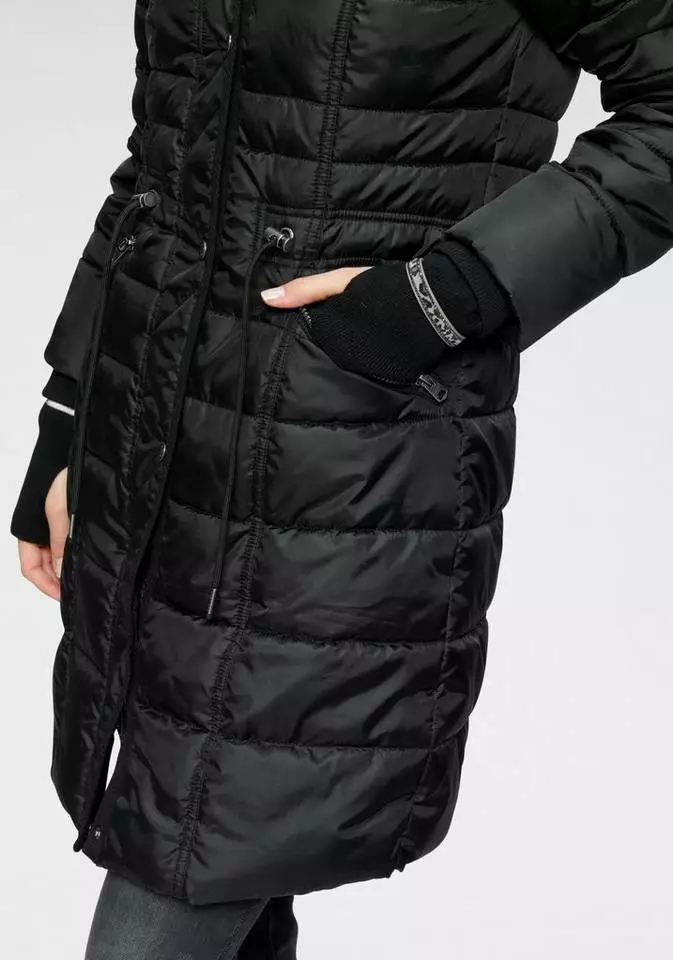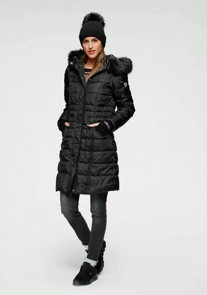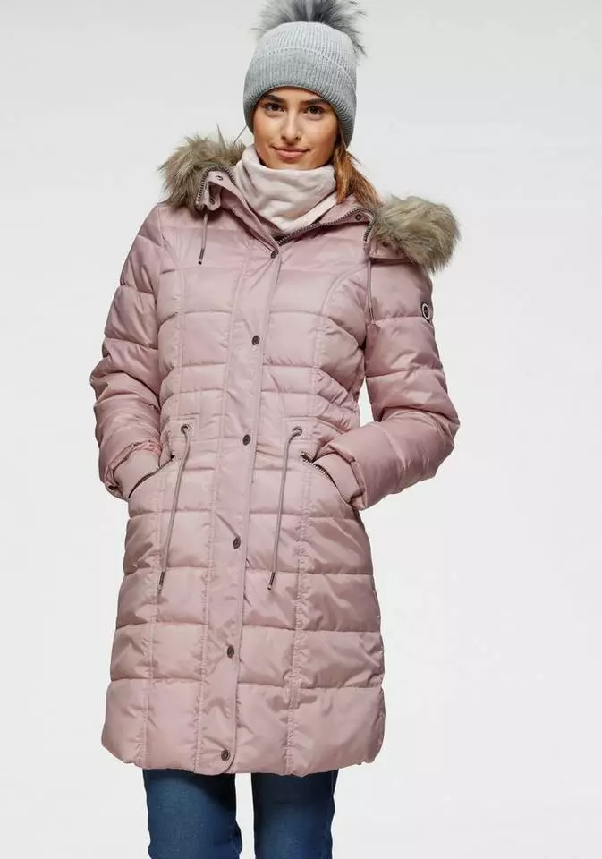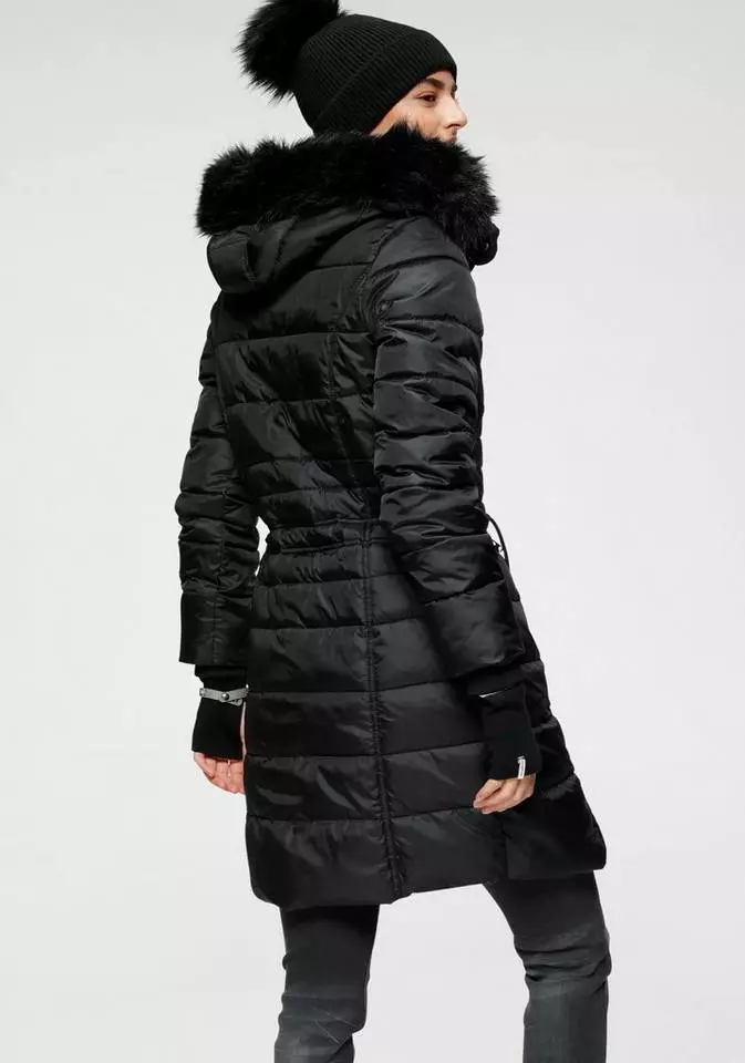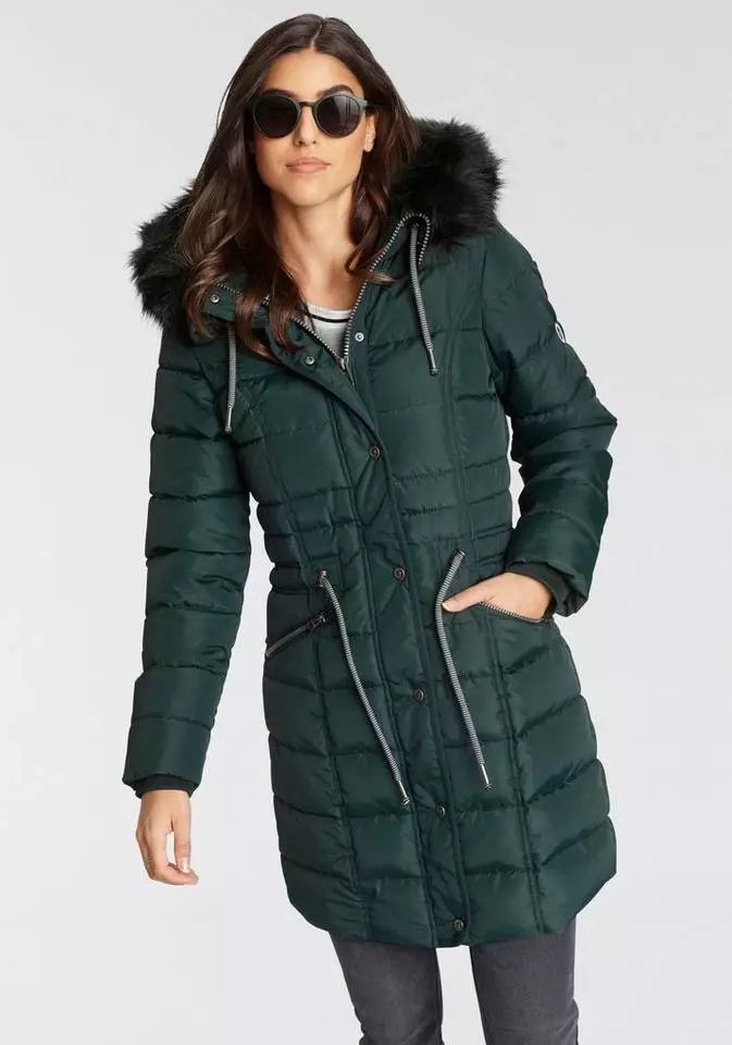 Wonderful Wintertime. Mit dem wärmenden Steppmantel von Kagaroos kannst du die kalte Jahreszeit rundum genießen. An der Kapuze sitzt eine kuschelige Borte aus Fake Fur und durch variable Tunnelzugbänder lassen sich Kragen und Taille nach Belieben variieren. Geräumige Eingrifftaschen gehören ebenfalls zur komfortablen Ausstattung des Wintermantels. Auch innen liegenden Bündchen und ein verblendeter Zwei-Wege-Zipper schützen vor Wind und Kälte. Machs dir gemütlich und gönn dir modischen Komfort – mit dem matt schimmernden Steppmantel von Kagaroos.