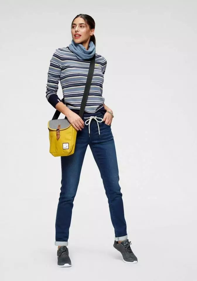 Streifen sind und bleiben unser liebstes Muster! Hier zieren harmonische Ringel den Rollkragenpulli von Kangaroos und ein aufgesticktes, kleines Känguru ist charmanter Blickfang. Besonderen Charakter erlangt der Pullover durch den zweilagigen Rollkragen in unterschiedlichen Farbnuancen. So können schöne Effekte und ein entspannter Look auch unter Blazer und Jacken kreiert werden. Aus angenehm leichter Materialmischung schmeichelt der Rolli sanft der Haut. Tolles Basic zum solo Tragen und Darunterziehen: der vielseitige Rollkragenpulli von Kangaroos.