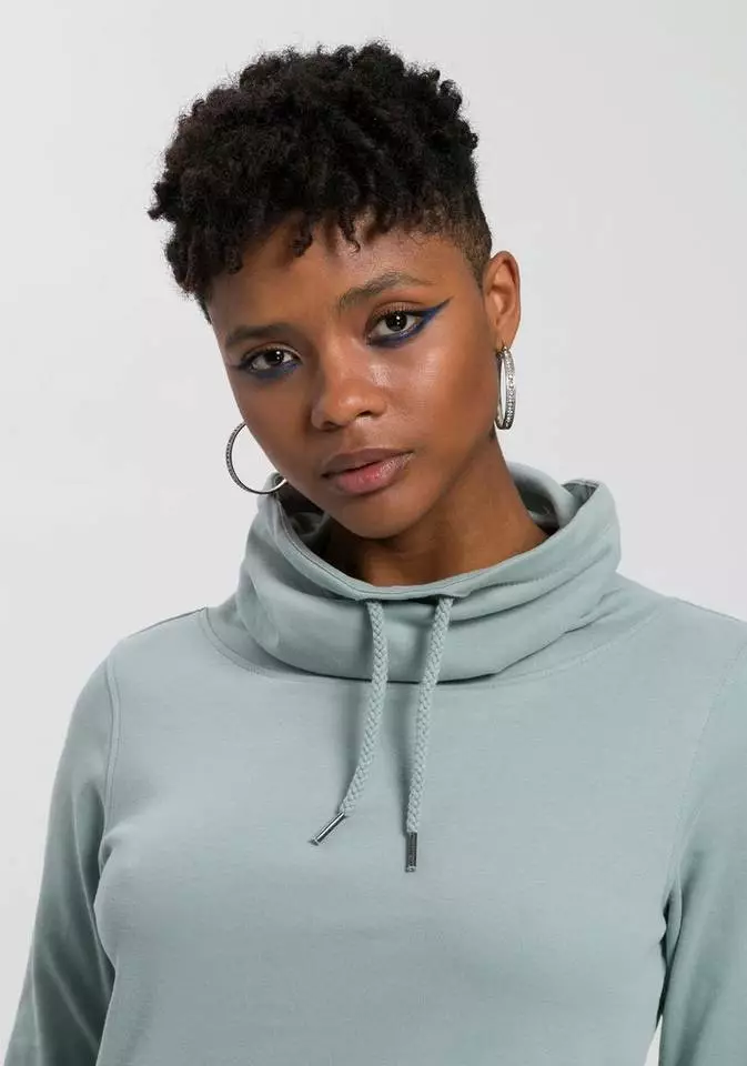 - Weitenregulierbarer Kragen durch Tunnelzug, typischer Logoschriftzug am Arm