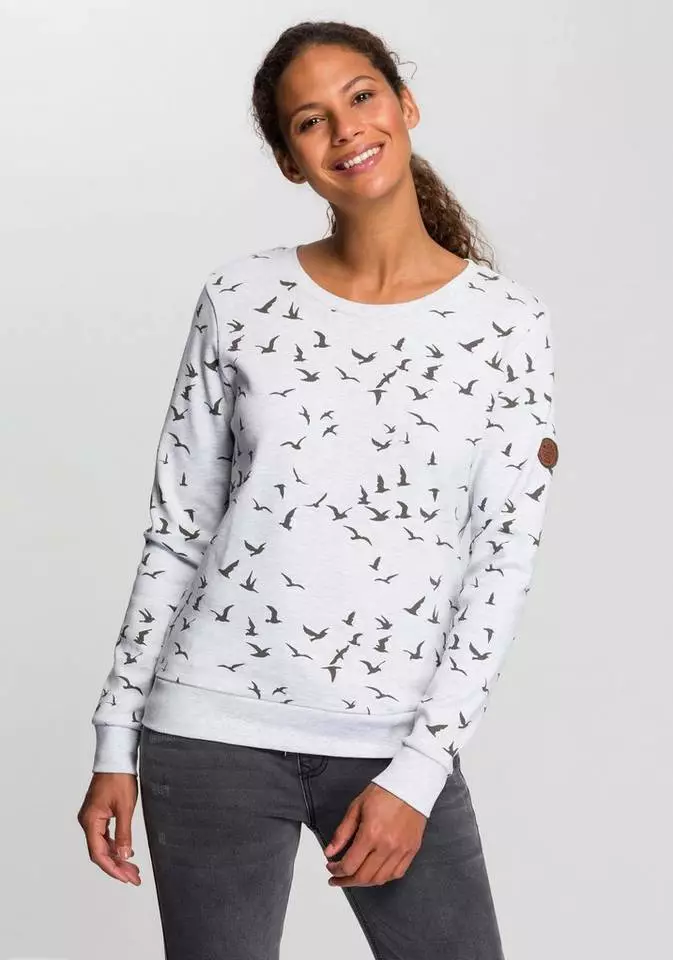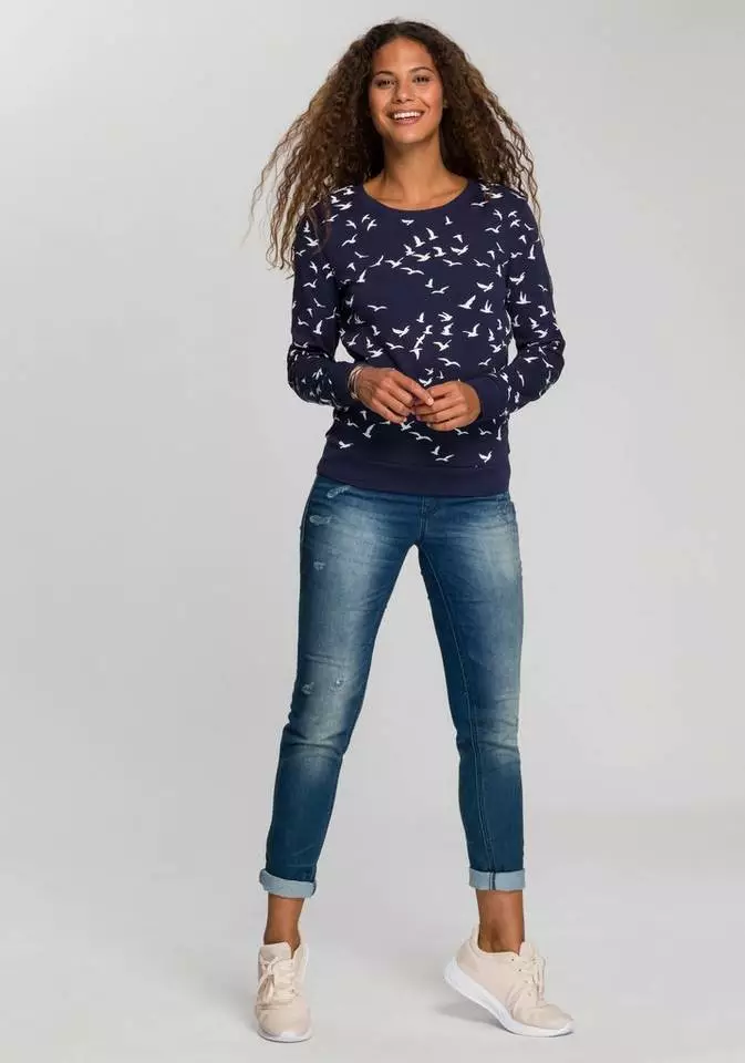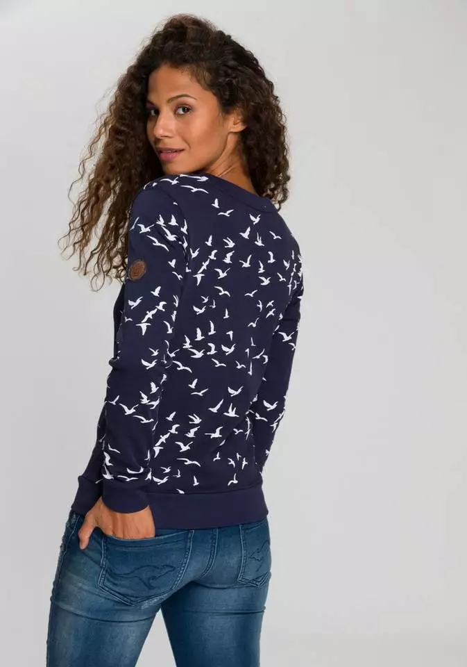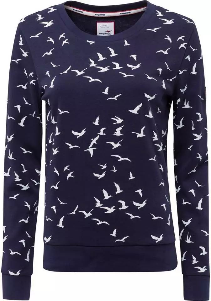 Der Maritim-Trend geht weiterhin über alles. Bester Beweist – das Sweatshirt von Kangaroos! Schon beim ersten Anblick wird klar, hier bleiben garantiert viele Modefrauen hängen. Der Alloverprint ist einfach zu genial. Aber auch das Basic-Design mit Rundhalsausschnitt und glatten Saumbündchen wirkt überzeugend. Am Ende schließt der sportlich feminine Pullover mit einem kleinen Label-Patch am linken Oberarm ab. Cool, cooler, am coolsten – ist das Sweatshirt von Kangaroos.