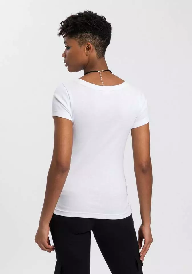 Neue Outfits lassen sich mit dem T-Shirt von KangaROOS ganz leicht kombinieren. Denn durch das Vintage-Design bekommt es einen Used-Look, wodurch deine Looks cool und lässig wirken. Dieses Shirt hat einen Rundhalsausschnitt und ist hüftbedeckend sowie sehr figurbetont geschnittenT-Shirt, sodass deine Silhouette schön betont wird.