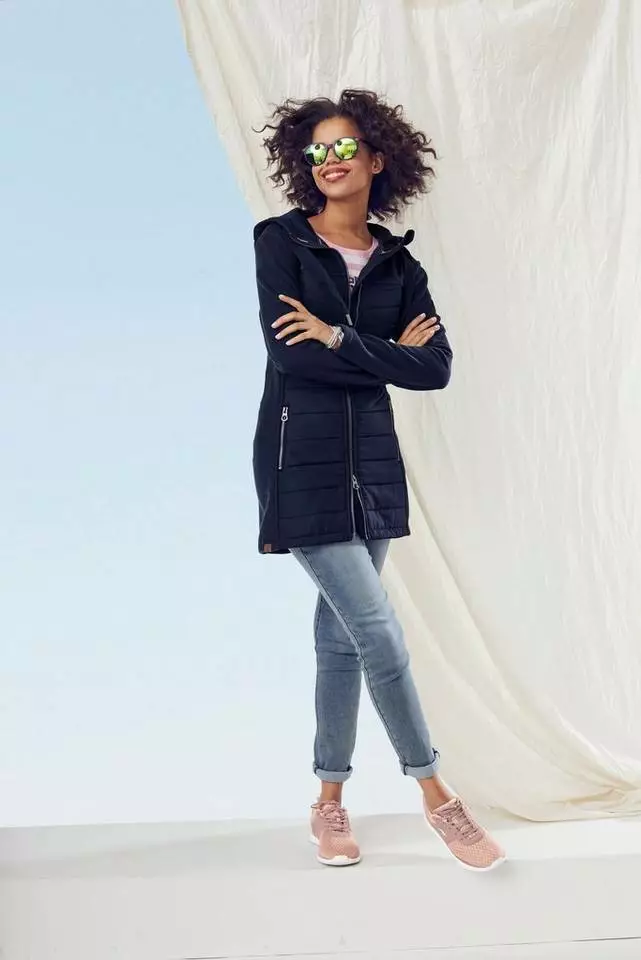 - Mit fixierten turn-up Ärmelabschlüssen und kontrastfarbende Seitennähte