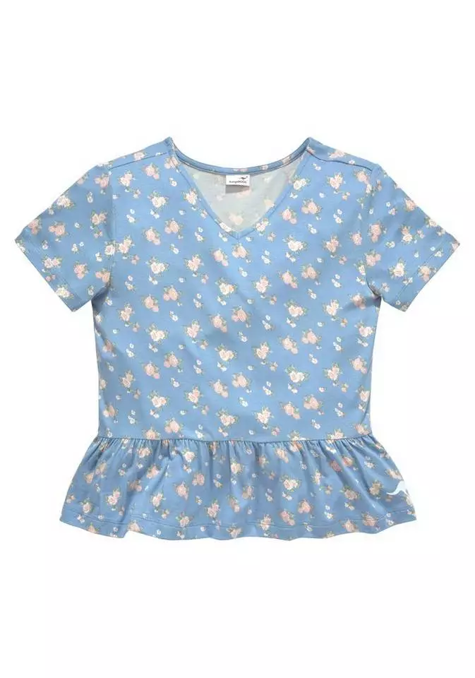 Ob Mode-Blogger oder nicht — in dieses T-Shirt der Marke KangaROOS werden sich alle Mädels verlieben. Die kurzen Ärmel enden in einer abgesteppten Kante. Das Shirt hat einen V-Ausschnitt und ist taillenbedeckend sowie gerade geschnitten, sodass die Bewegungsfreiheit nicht leidet.