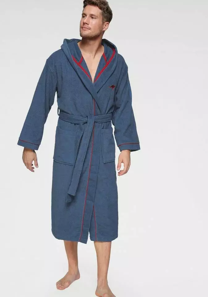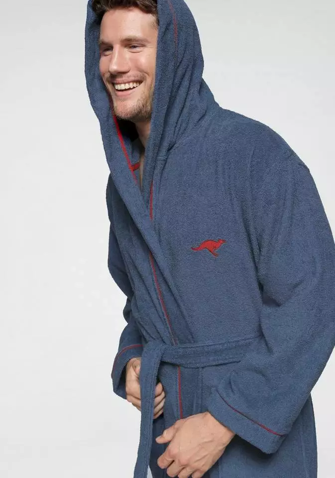 Dieser unifarbene Unisex-Bademantel der Marke Kangaroos macht sowohl in der Sauna, als auch Zuhause eine tolle Figur. Mit Kapuze und Gürtel ausgestattet lädt er zum Einkuscheln ein. Der weiche Stoff ist aus 100% Baumwolle, sehr hautfreundlich und pflegeleicht. Sie können ihn bis 60°C in der Maschine waschen und im Wäschetrockner trocknen. Genießen sie erholsame Stunden im Bademantel Luke.